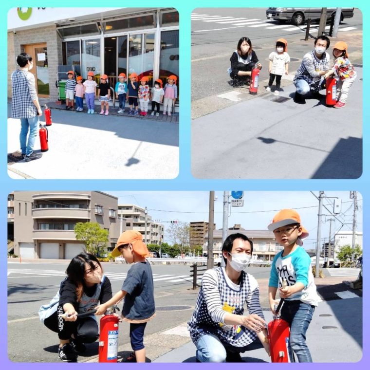 その後は、外に出て水消火器