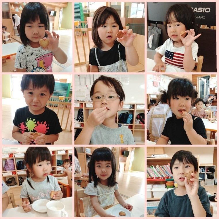 そしてみんなで作ったクッキーをおやつの時間に食べました!!自分たちで形を抜いたクッキーに、「私が作ったんだよ!」「この形作ったやつ!」と嬉しそうにみんなに報告していましたよ🥰