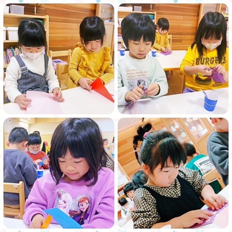 出来上がった作品は保育室に飾るので、送迎の際にぜひ見て見てくださいね👀✨