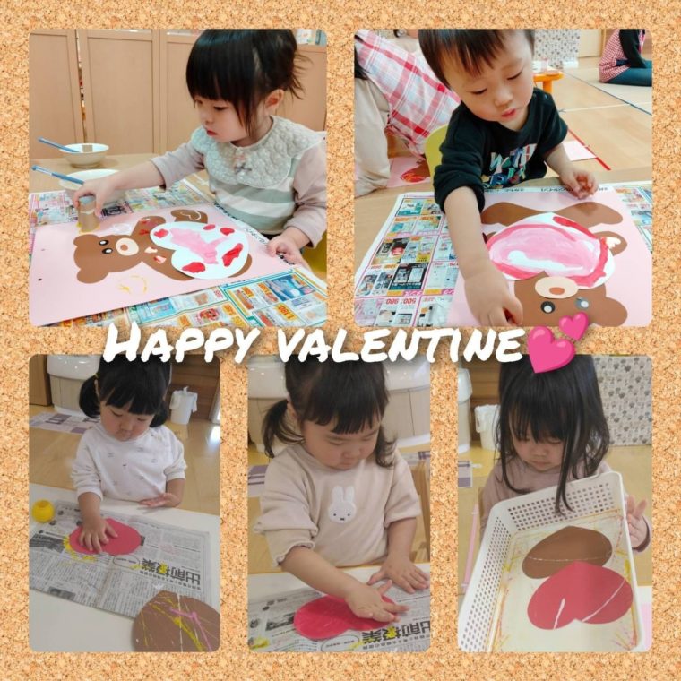 うさぎ組さんとぱんだ組さんは2月14日がバレンタインデーということで、バレンタインっぽい製作をしました🍫💓