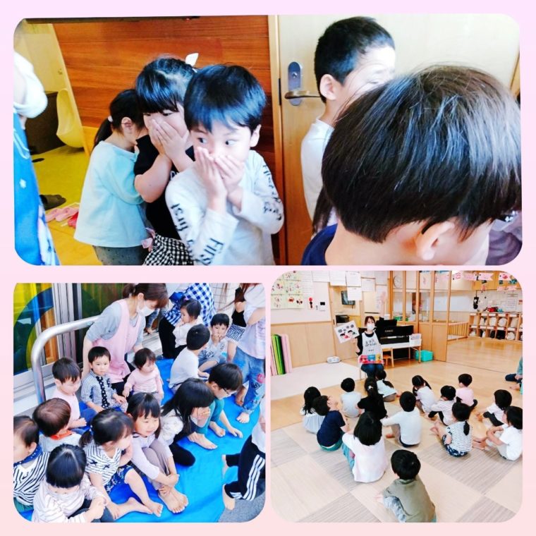 火災のベルに驚いて泣いてしまう子もいましたが、手でしっかり口をおさえ安全な場所に避難することができました👏