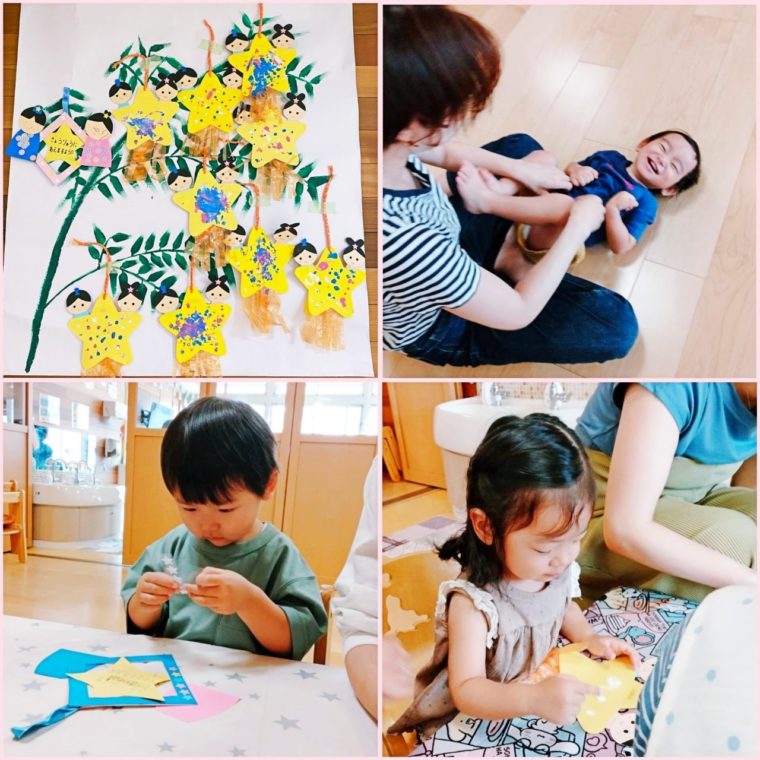 以上児は、折り紙を折ってお顔を描いて、のり貼りをして、七夕製作をしました🎋