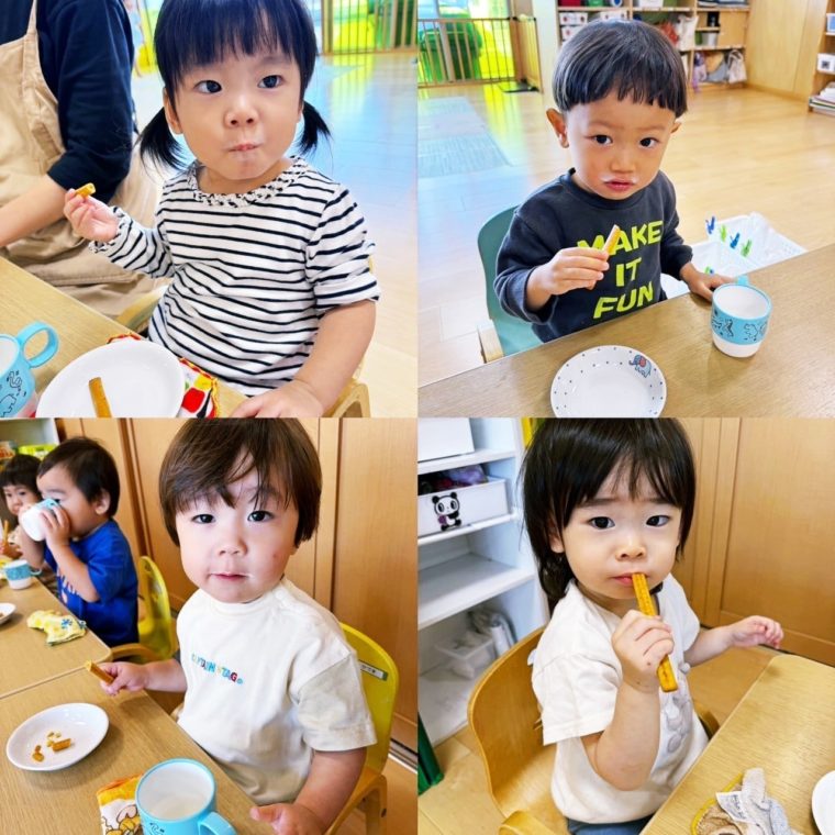 先生に「これ美味しい〜」「〇〇ちゃんこれすき〜」と会話しながら楽しいおやつの