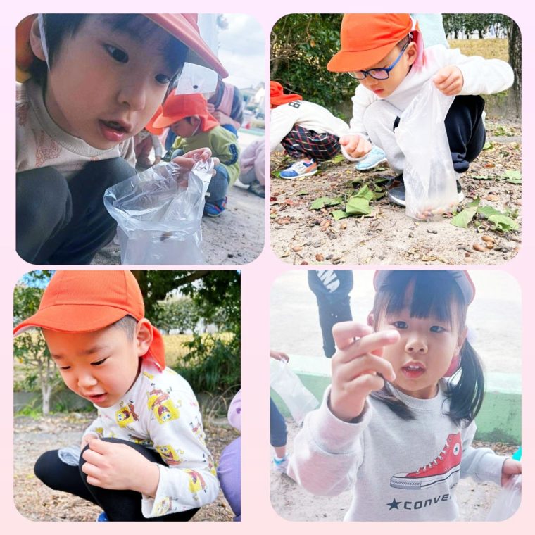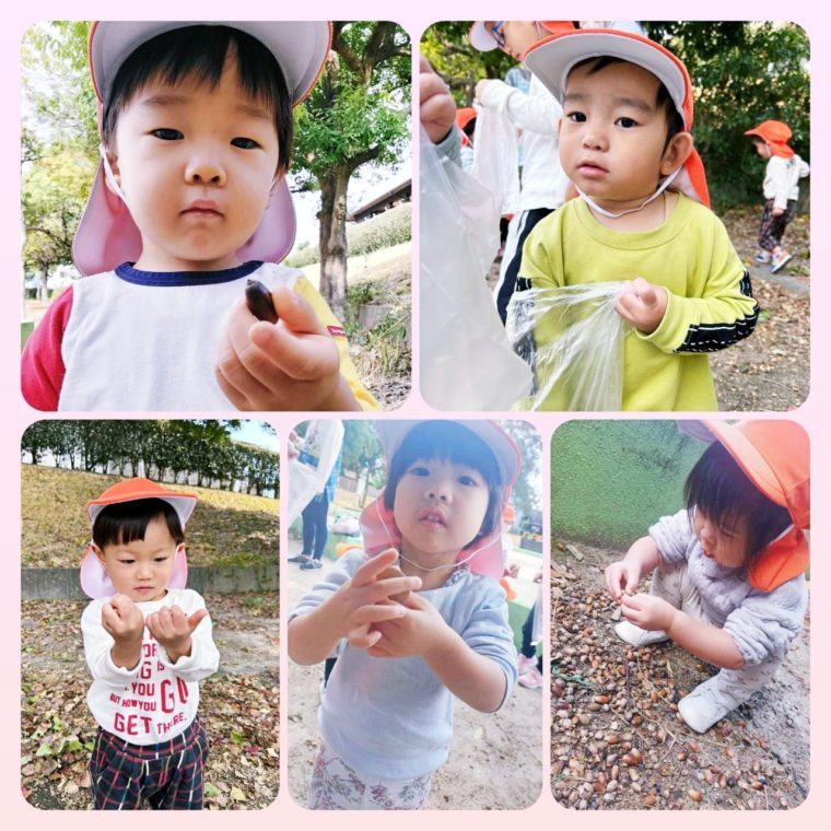 どんぐりを見つけると、「あったよ」と嬉しそうにどんぐりを見せてくれました☺️