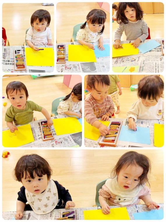 うさぎ組🐰さんは、色画用紙いっぱいに好きな色のクレヨンを選んではぐるぐる🌀と模様を付けました!