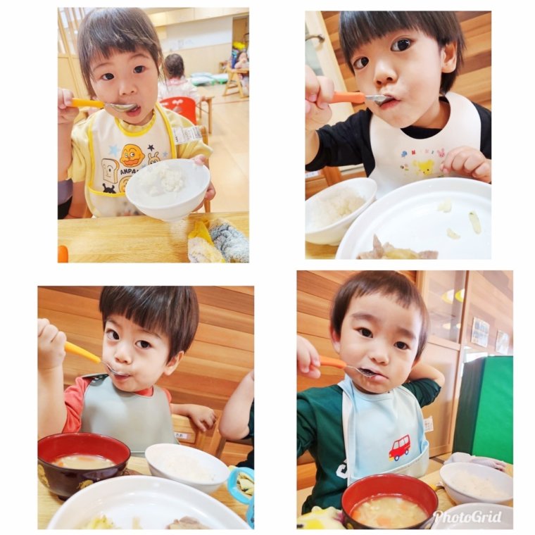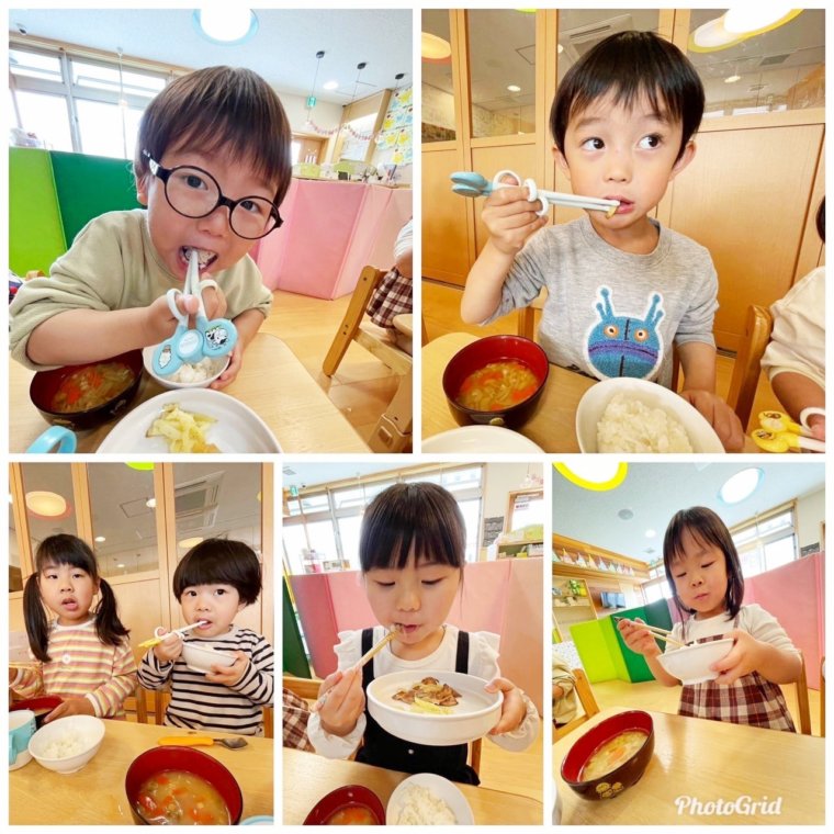 保育園では朝から美味しそうな匂いがしていて「今日の給食は何かな?」「おなかすいた」と給食の時間を楽しみにしている子ども達😊