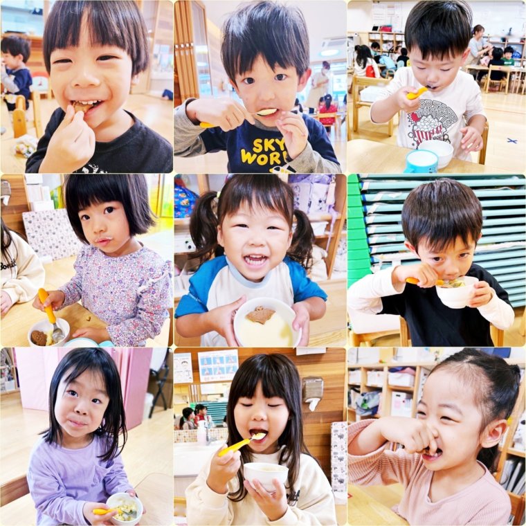 プリンにコウモリやおばけの形のクッキーが乗っていて、「すごい!!」「おばけだ!!」と子どもたちは大喜びでした😍✨️