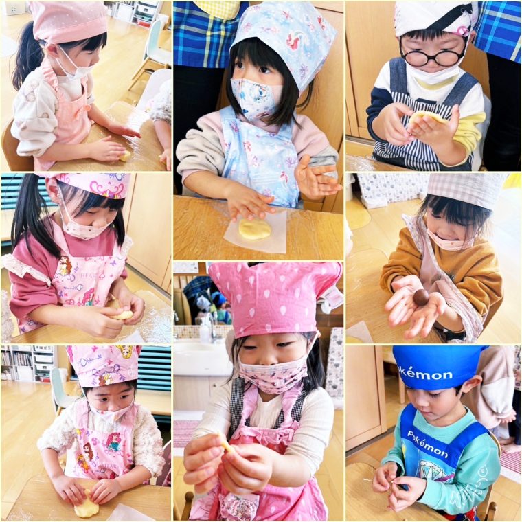 どんなお顔にしようか考えながら、捏ねたり伸ばしたりして世界に一つだけの鬼さんクッキーの完成です🙌