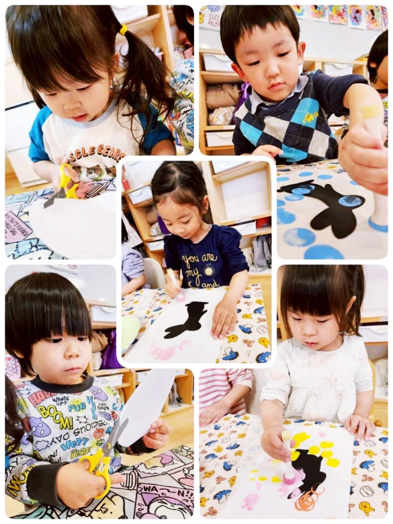 絵の具🖌️とクレヨンを使って、スタンプやお絵描きをして世界に1つだけのイースターエッグ🥚を作りました。