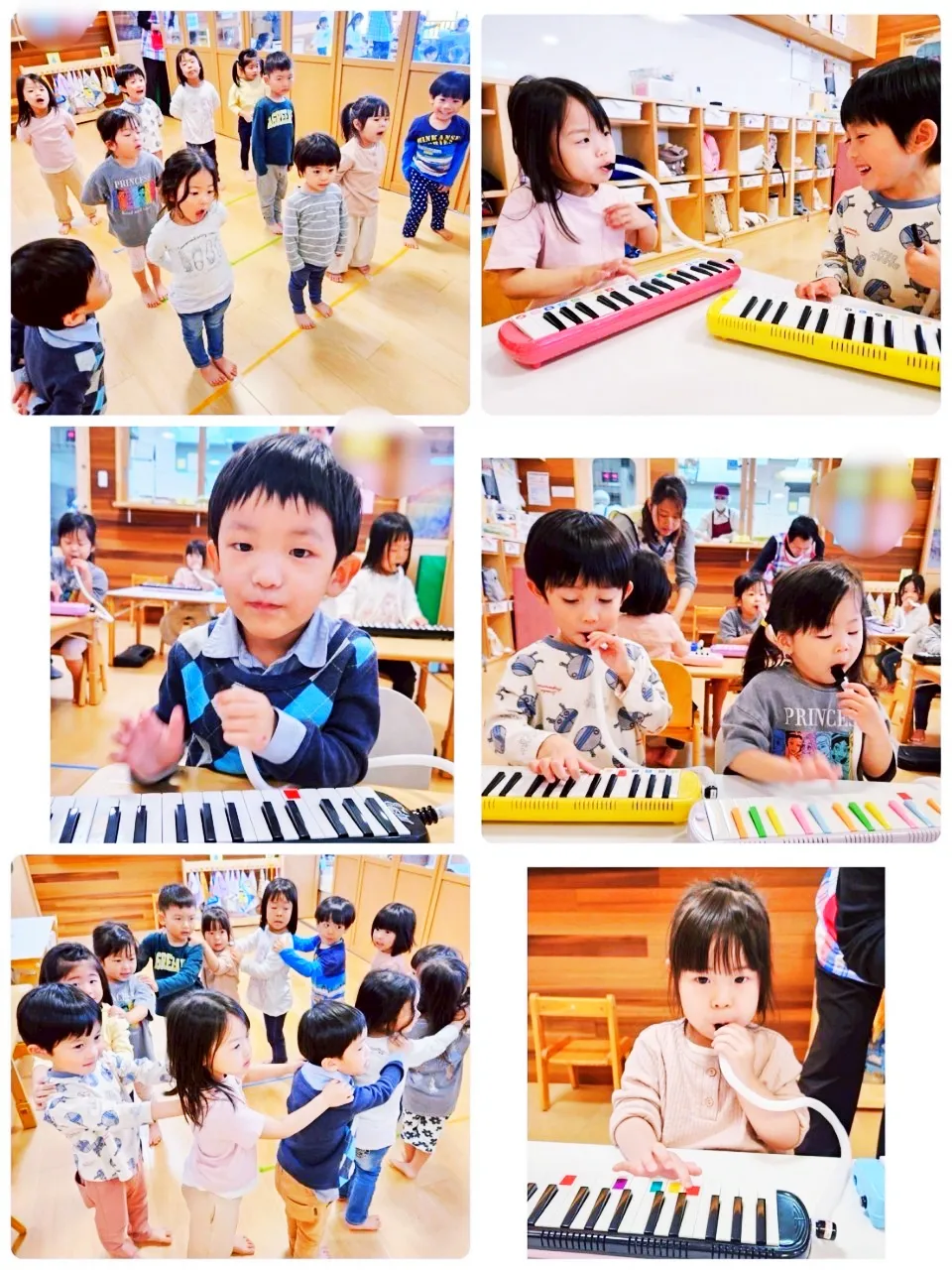 先生のピアノに合わせて『てをたたきましょう』を歌うと、どのクラスも大きな声で歌い、笑いましょう、怒りましょう、泣きましょうでは可愛らしい表情も見せてくれて思わず微笑んでしまいます🥰