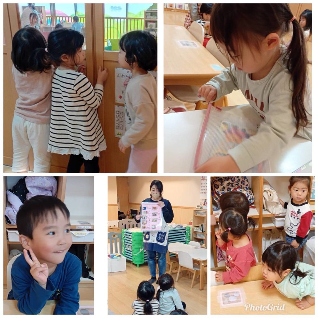 新しい保育室で「ロッカーはどこかな?」「シールはどれを貼る?」とお友だちと話をしながら朝の準備を頑張っていましたよ✨️