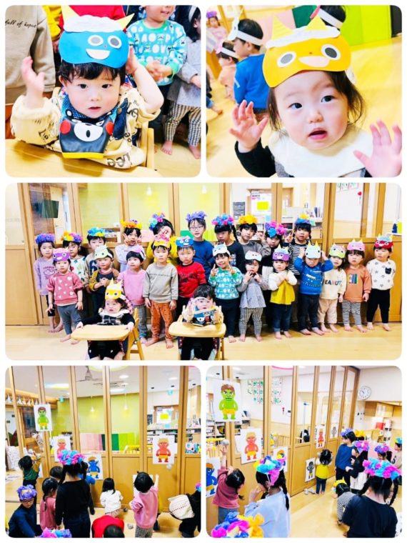 「節分👹」 先日の節分では、豆まきの歌を歌ったり、子ども達が作った個性豊かな鬼のお面や帽子の紹介をしてくれました。 その後はみんなで豆まきの的当てゲームを楽しみ... -